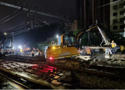 近日一段鐵路就行了道岔移植作業,首先要將第6組道岔拆除,然后把組裝好的道岔原位置安裝上去,搗固密實,使其達到開通條件。因為線路運行問題,維修時間只有三個多小時,因此工人需要盡快完成作業。